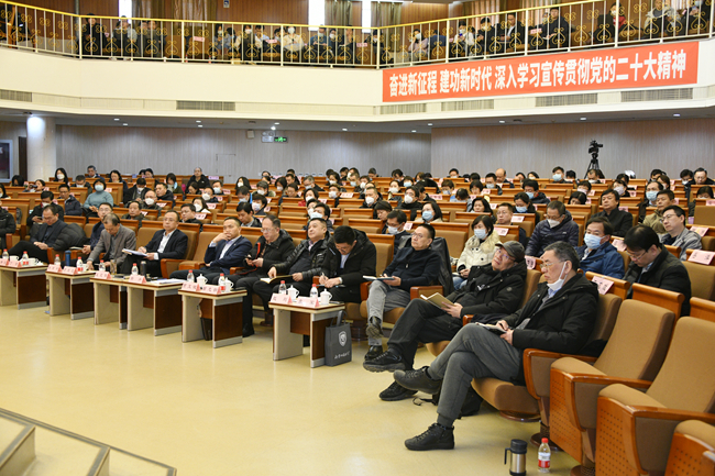 校學術委員會主任袁軍,黨委常委、統戰部部長劉培元,全體處級干部共200余人參加會議。