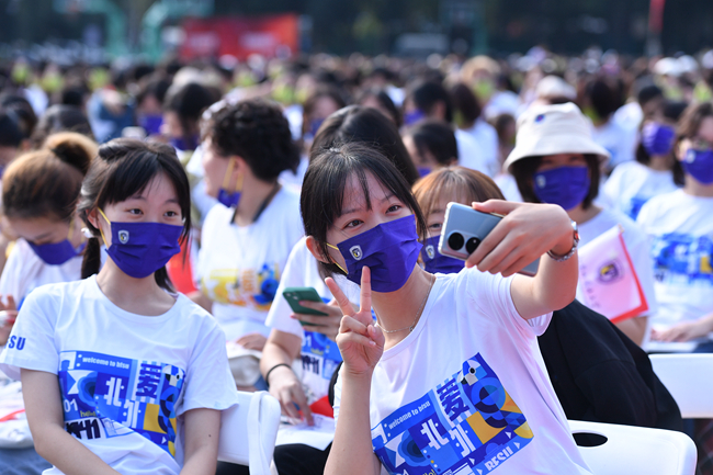 風和日麗,金秋朗朗。2022年9月3日,北京外國語大學2022級新生開學典禮在東校區體育場隆重舉行。3008名新同學加入北外大家庭,開啟人生新征程。