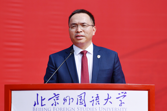 第一,以語為媒,講好有廣度的中國故事。講述有廣度的中國故事呼喚北外擔當,希望同學們向前輩看齊,傳揚精益求精的卓越氣度,扛起“語通中外、道濟天下”的時代重任。講述有廣度的中國故事呼喚共建語言共同體,我們要用自己的行動構建多語的平等的無障礙溝通的世界。語言是軟技能,軟技能需要硬功夫。北外人都要說一口字正腔圓、落落大方的好外語,掌握“語出驚人”的北外真功夫。講述有廣度的中國故事呼喚多元視角看世界,掌握一門語言就打開了一扇看世界的窗,希望同學們以多元視角看世界,發現和講述一個更加真實、立體、全面的中國。